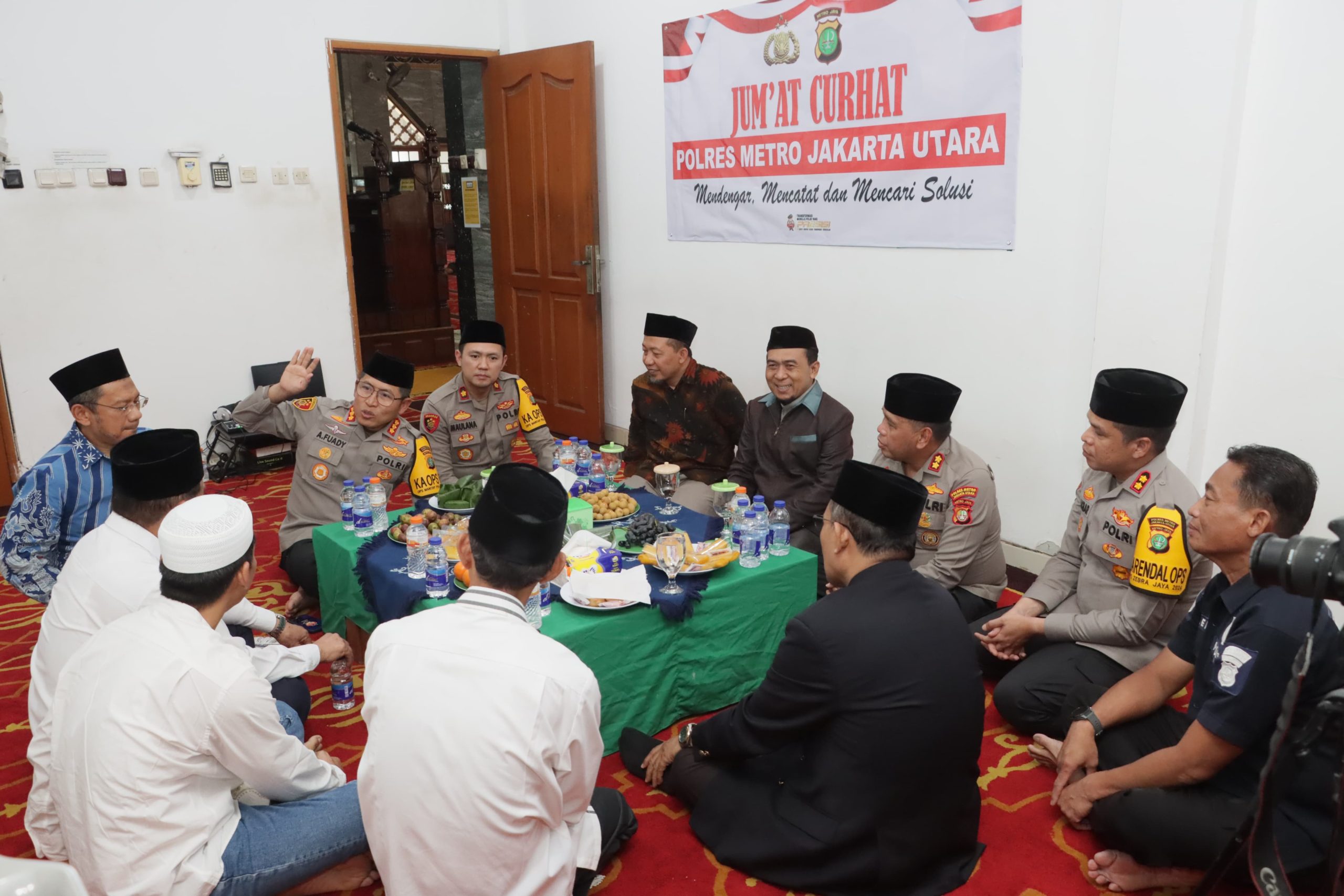 JAKARTA -potensinusantara.co.id – Kapolres Metro Jakarta Utara Kombes Pol H. Ahmad Fuady, S.H., S.I.K., M.H bersama Jajaran PJU melaksanakan kegiatan Jumat Curhat keliling bertempat di Masjid Raya Al-Musyawarah Jl. Raya Kelapa Nias No. 613 RT 13 RW 18 Kelurahan Kelapa Gading Timur Kecamatan Kelapa Gading, Jakarta Utara, Jumat (18/10/2024).