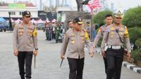 JAKARTA – potensinusantara.co.id – Kapolres Pelabuhan Tanjung Priok AKBP Indrawiennya Panjiyoga, S.H., S.I.K., dan Dandim 0502 Jakarta Utara Letkol Inf. Doni Gredinand, S.H., M.Tr. (Han)., M.I.POL., yang diikuti 224 Personel gabungan TNI – Polri, dalam pelaksanaan pengamanan kegiatan kunjungan kerja, penganugerahan tanda kehormatan Samkaryanugraha kepada KRI Nanggala-402 oleh Presiden RI dan penganugerahan brevet kehormatan Hiu Kencana kepada Presiden RI dan Wakil Presiden RI, yang dilanjutkan dengan meninjau sailing pass alutsista TNI Angkatan Laut di perairan Teluk Jakarta, Sabtu (28/09/2024), bertempat di Mako Kolinlamil Tanjung Priok Jakarta Utara.