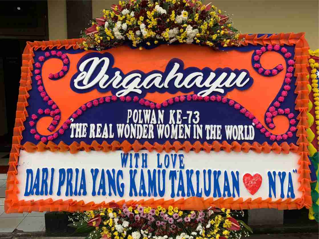 Ini yang sedikit unik ada ucapan “Dirgahayu Polwan Ke 73, The Real Wonder Women in the World” dan tertulis juga “With Love Dari Pria Yang Kamu Taklukan Cintanya”. Ujar Sigit.