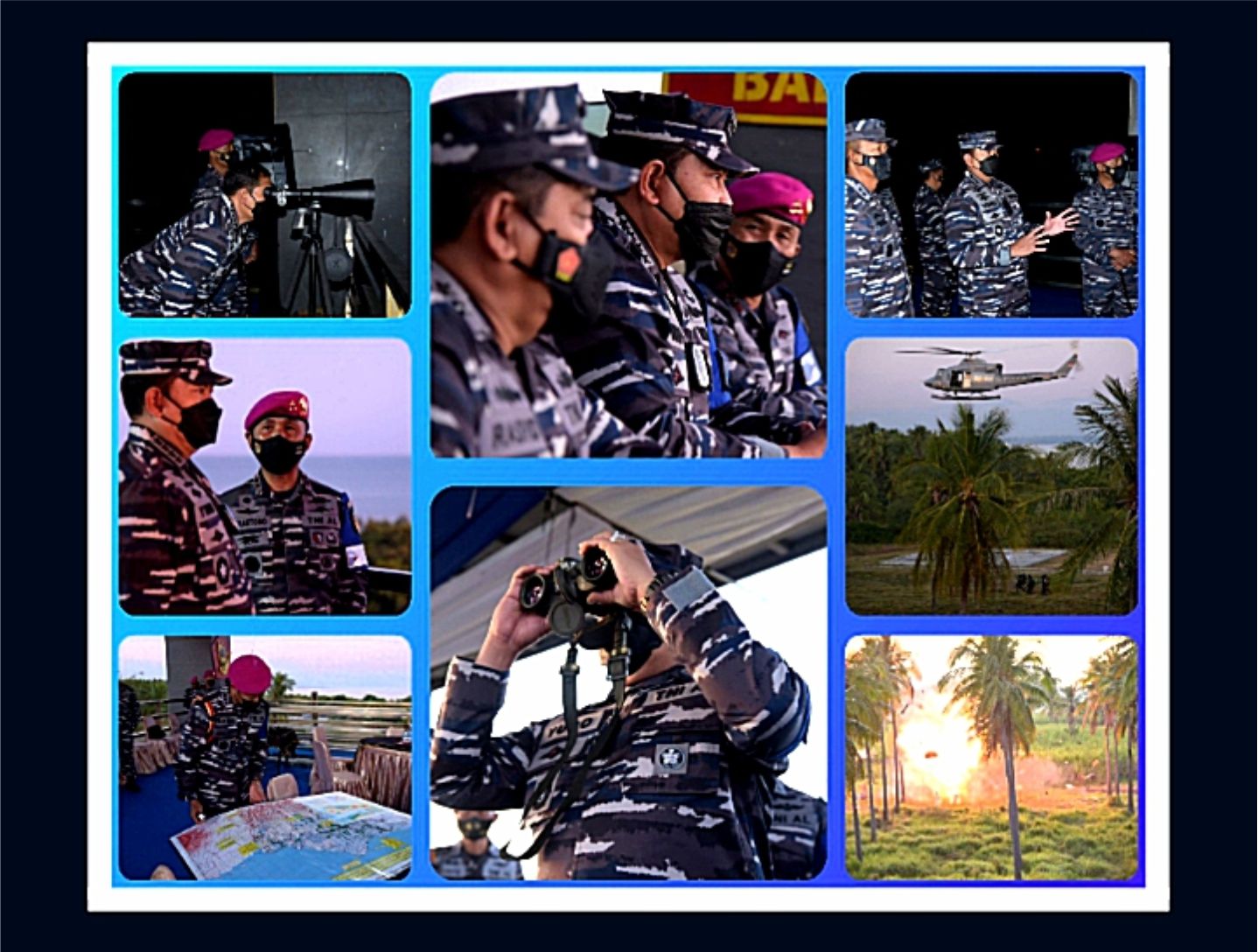 SITUBONDO, potensinusantara.co.id – Kepala Staf TNI Angkatan Laut (Kasal) Laksamana TNI Yudo Margono SE. MM. didampingi Komandan Korps Marinir (Dankormar) Mayor Jenderal TNI (Mar) Suhartono meninjau secara langsung Latihan Operasi Dukungan Pasukan Khusus Gabungan (Latopsdukpassusgab) TNI AL Tahun 2021 antara Intai Amfibi (Taifib) Korps Marinir TNI AL dan Komando Pasukan Katak (Kopaska) TNI AL di daerah latihan pertempuran Marinir Banongan Situbondo Jawa Timur. Minggu (22/8/2021).