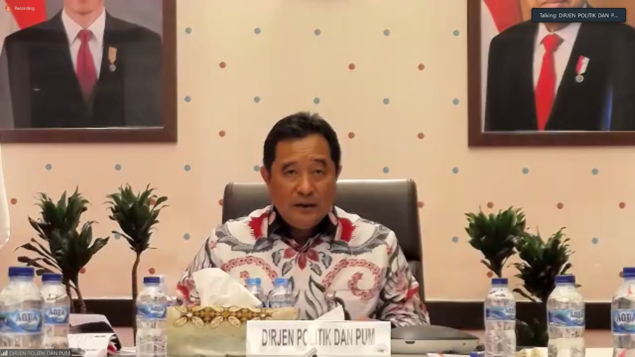Jakarta -potensinusantara.co.id- Direktur Jenderal (Dirjen) Politik dan Pemerintahan Umum (Pol & PUM) Kementerian Dalam Negeri (Kemendagri) Bahtiar menyampaikan, perlu adanya sinergisitas dan tim yang terpadu di tingkat pemerintah daerah (pemda) dalam persiapan Pemilu dan Pilkada 2024. Ia mendorong pemda memberikan dukungan terkait urusan pemerintahan umum, khususnya yang dilaksanakan oleh Badan Kesatuan Bangsa dan Politik (Kesbangpol).