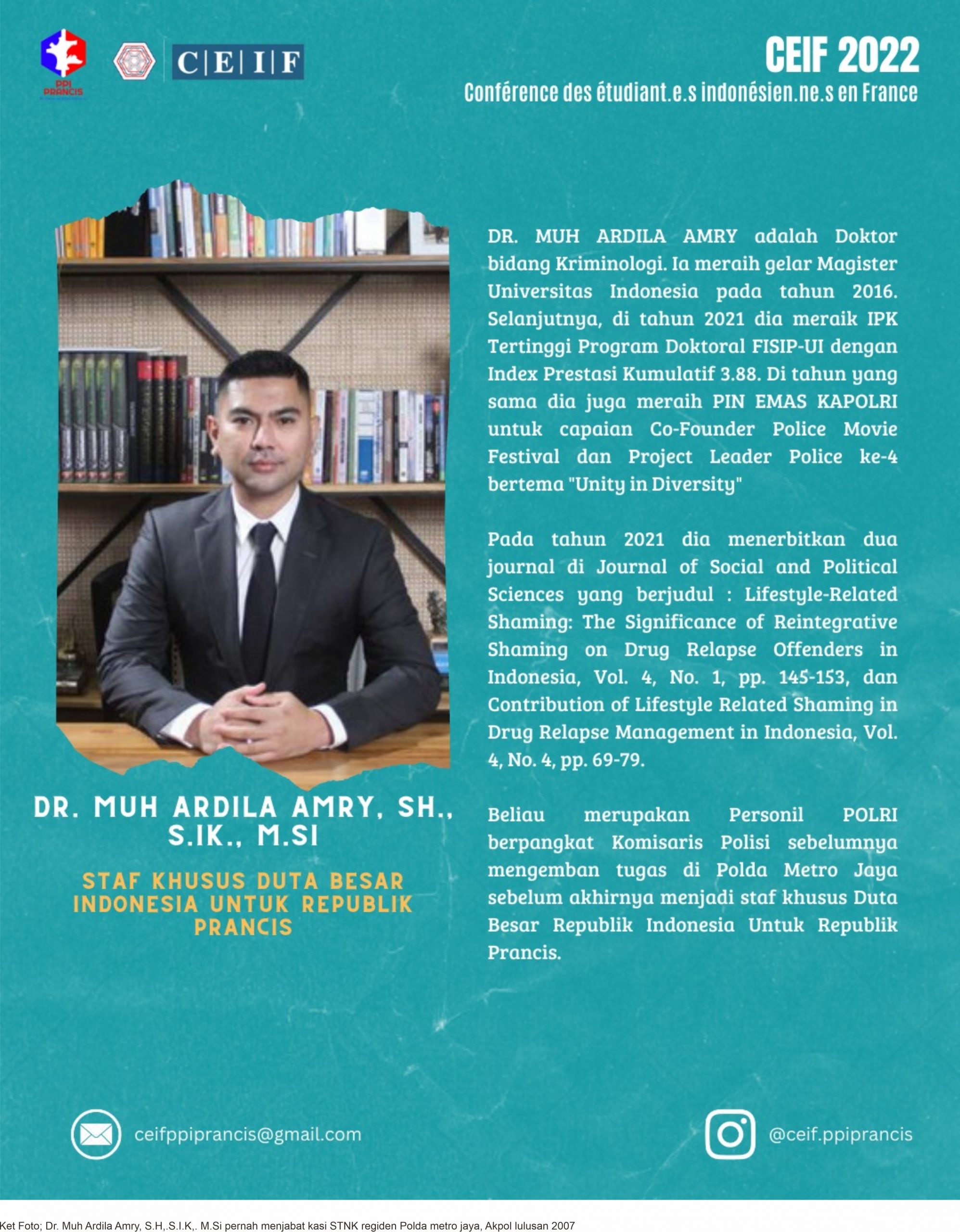 Kegiatan yang diprakarsai langsung oleh Perhimpunan Pelajar Indonesia (PPI) di Negara Prancis, Staf Khusus Duta Besar Indonesia Untuk Republik Prancis, Kompol Ardila Amry, bersama dua orang lagi dari akademisi untuk menjadi juri dalam konferensi pelajar yang bertajuk Conference des etudiant.e.s Indonesien.ne.s en france (CIEF) 2022.