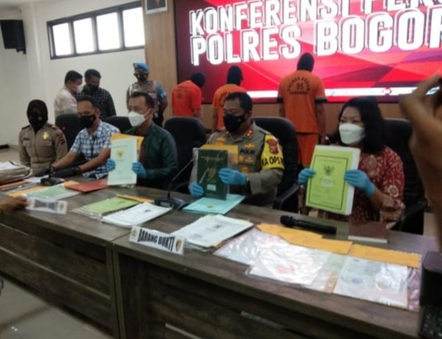 “Yang lapor ke Polres Bogor itu, pak AAS. Pengembangan laporan Polisi nomor : LP / B/ 1448 / IX / 2021 / JBR / RES BOGOR, tanggal 30 September 2021, kami ketahui bahwa kelompok mafia tanah telah memalsukan surat-surat produk dari DJKN dan juga SHGB 1914. Akibat perbuatan kelompok mafia tanah ini, timbul kerugian kepada korporasi/perorangan ± Rp10 milyar,” kata AKBP Iman Imanudin, Kapolres Bogor dalam jumpa pers di aula SS Polres Bogor Kamis (13/01).