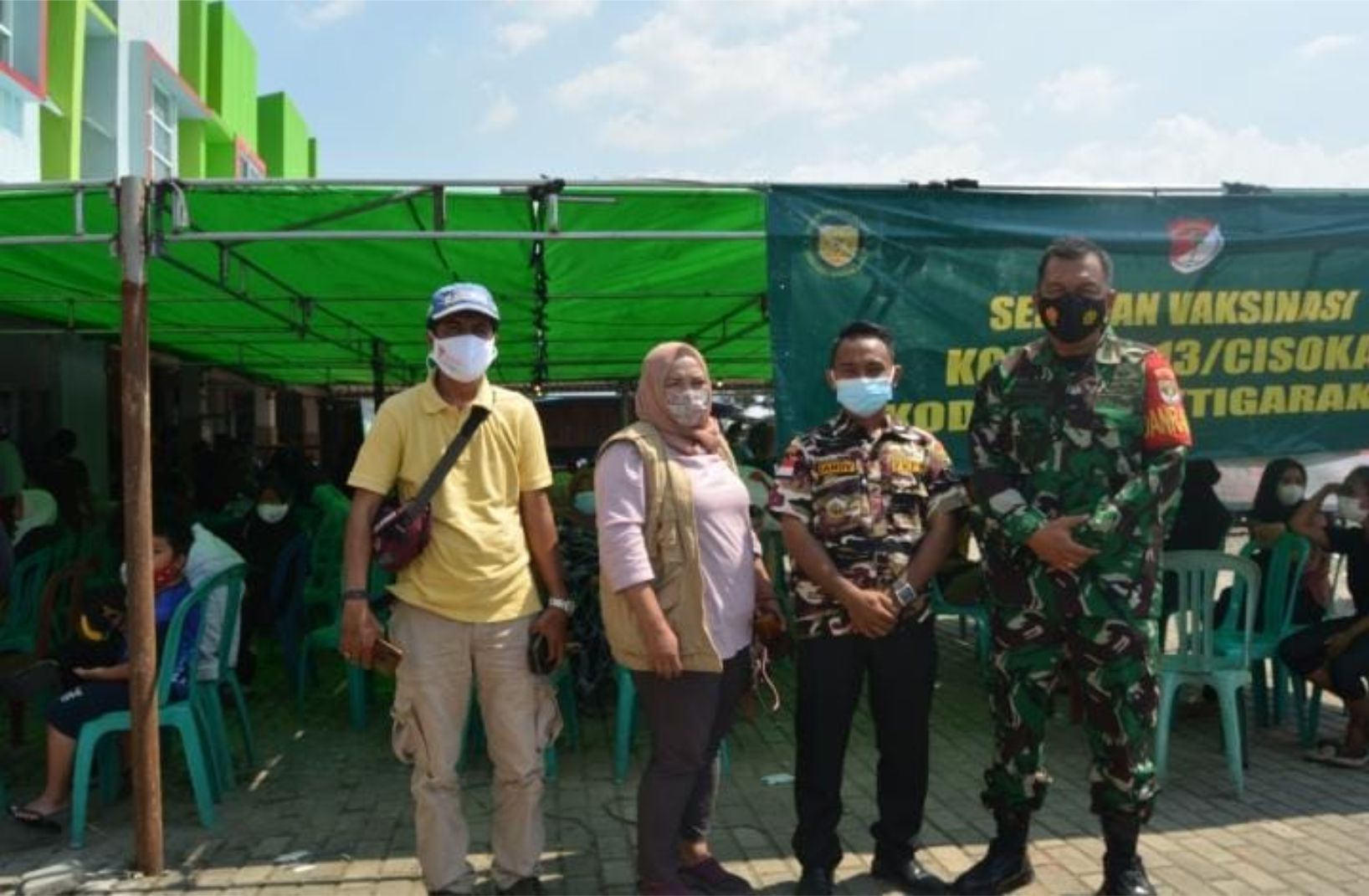 siap Vaksinasi massal yang diselenggarakan oleh Tim Nakes oleh kelinik Nugraha, Kesdim 0510/Tangerang bekerja sama dengan Koramil 13/Cisoka bertempat di jalan Syeh Mubarok Cisoka Tigaraksa tempatnya ruko perumahan pesona wibawa peraja Blok A.2 No 1 Rt 05 Rw 06 Desa Jungjing Kecamatan Cisoka Kabupaten Tangerang Provinsi Banten