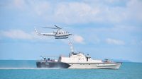 Tanjungpinang, potensinusantara.co.id- Pangkalan Utama TNI AL (Lantamal) IV bekerjasama dengan Wing Udara I Pusat Penerbangan TNI AL (Puspenerbal) menurunkan Kapal Patroli Keamanan Laut (Patkamla) I.4-06/Setumu dan Sea Rider beserta Helikopter HU-4204, sesuai dengan perintah latihan dari Komandan Lantamal (Danlantamal) IV Laksamana Pertama (Laksma) TNI Dwika Tjahja Setiawan, S.H., M.H., M.Tr.Opsla bersinergi dengan Kantor SAR (Kansar) Kota Tanjungpinang melaksanakan Latihan Bersama penanggulangan kecelakaan laut di perairan Berakit, Kabupaten Bintan, Kepulauan Riau (Kepri) pada Selasa (29/03/2022).
