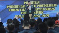 SERANG – Potensinusantara.co.id – Ketua Karang Taruna (KT) Provinsi Banten Andika Hazrumy melantik Bahrul Ulum sebagai Ketua KT Kabupaten Serang 2024-2029 di Aula Pendopo Bupati Serang, Jumat (10/1). Menurut Andika pihaknya berpegang kepada aturan organisasi KT dalam memutuskan melantik kepengurusan Ulum tersebut.