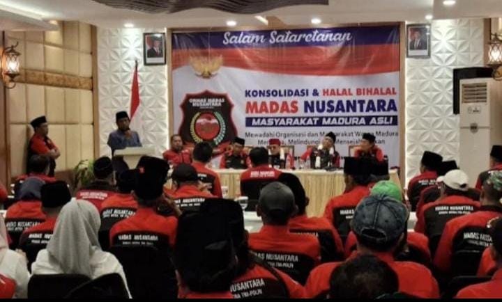 Organisasi Masyarakat Madura Asli (Ormas Madas) Nusantara, Jumat (4/4/2025), menggelar konsolidasi dan halal bihalal Lebaran Idul Fitri 1446 H di Surabaya, Jawa Timur. Acara tersebut dihadiri Ketua Umum DPP Ormas Madas Nusantara HM. Jusuf Rizal bersama sejumlah tokoh penting, mulai dari tingkat DPP, DPW, DPD, dan DPK.