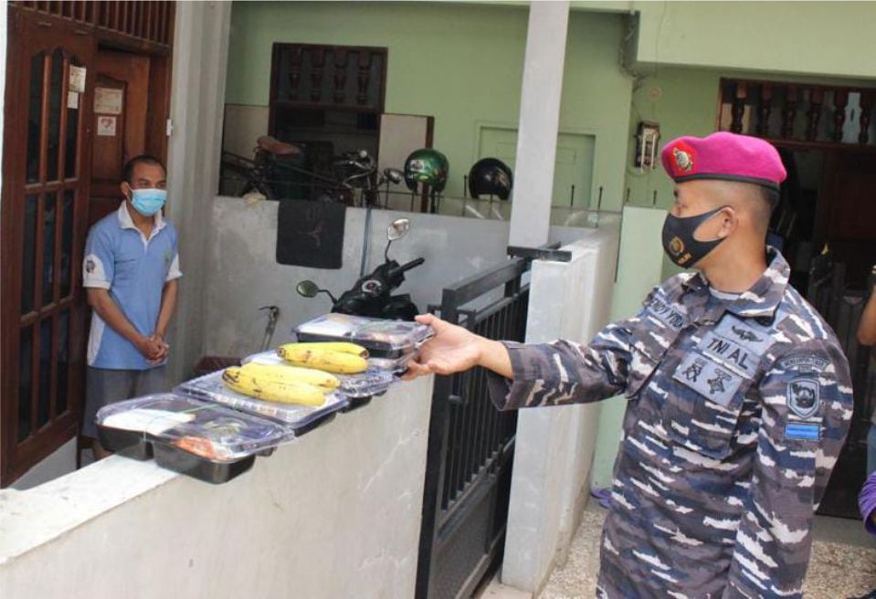 JAKARTA, potensinusantara.co.id – Dalam rangka membantu masyarakat yang terdampak Covid–19 khususnya yang sedang melaksanakan isolasi mandiri (isoman), Korps Marinir TNI AL melaksanakan kegiatan pembagian makanan kepada masyarakat yang sedang melaksanakan Isoman, Jumat (13/8/2021).