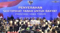 BANYUWANGI – potensinusantara.co.id – Presiden Republik Indonesia (RI), Joko Widodo didampingi Menteri Agraria dan Tata Ruang/Kepala Badan Pertanahan Nasional (ATR/BPN), Agus Harimurti Yudhoyono (AHY) menyerahkan 10.323 sertipikat hasil Redistribusi Tanah yang diperuntukkan untuk bangunan permukiman. Sebanyak 5.000 perwakilan penerima sertipikat memenuhi lokasi penyerahan, yaitu Gedung Olahraga (GOR) Tawang Alun di Kabupaten Banyuwangi pada Selasa (30/04/2024).