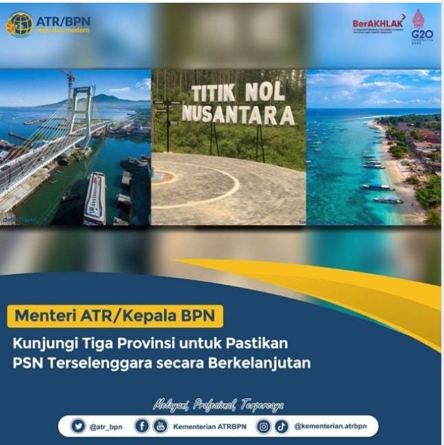 Untuk memastikan seluruh PSN tersebut berjalan secara berkelanjutan, dimulai sejak Rabu, 14 September 2022 hingga Jumat, 16 September 2022, Menteri Menteri ATR/Kepala BPN, Hadi Tjahjanto didampingi Wakil Menteri ATR/Wakil Kepala BPN, Raja Juli Antoni, beserta beberapa Pejabat Pimpinan Tinggi Madya dan Pratama Kementerian ATR/BPN melakukan kunjungan kerja ke tiga provinsi, yaitu Kalimantan Timur, Sulawesi Utara, dan Nusa Tenggara Barat (NTB).