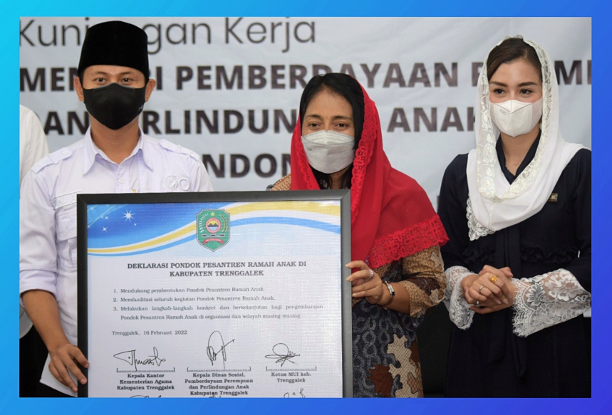 TRENGGALEK, potensinusantara.co.id – Menteri Pemberdayaan Perempuan dan Perlindungan Anak (PPPA) Bintang Puspayoga menyaksikan Deklarasi Pondok Pesantren Ramah Anak yang dilaksanakan di Pondok Pesantren Hidayatulloh, Kabupaten Trenggalek, Jawa Timur, Rabu (16/2/2022).