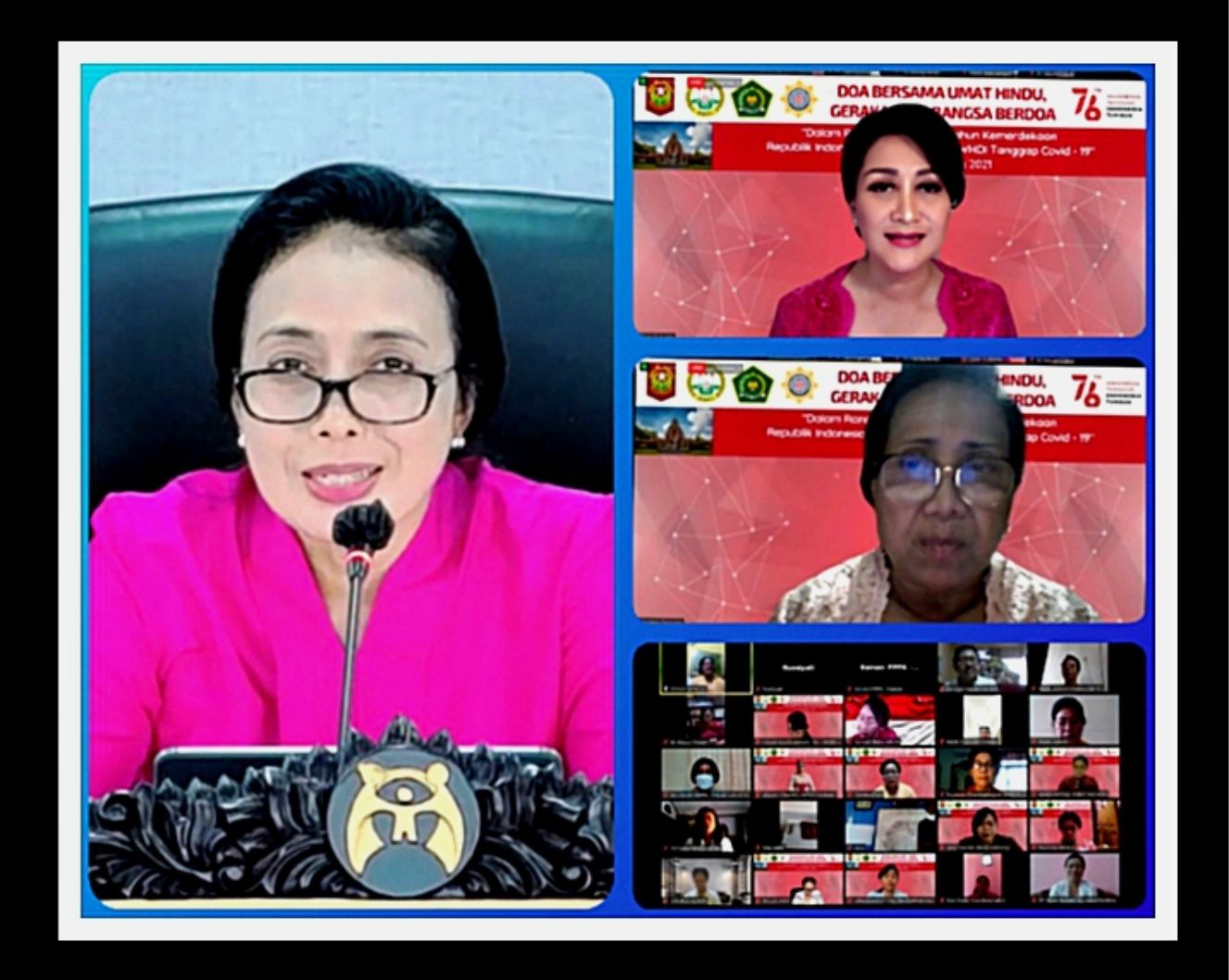 Menteri Bintang mengapresiasi Doa Bersama yang diselenggarakan oleh Kongres Wanita Indonesia (KOWANI) bersama Wanita Hindu Dharma Indonesia (WHDI) sebagai upaya bersama membantu pemerintah untuk mempercepat penyelesaian pandemi. Jakarta, Jumat (20/8/2021).
