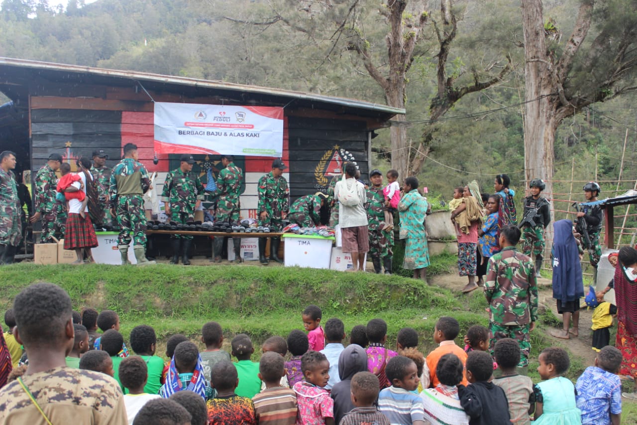 JAKARTA – potensinusantara.co.id – Di dalam menyambut bulan yang penuh berkah ini Pos Tima Satgas Yonif Mekanis 203/AK bekerja sama dengan Artha Graha membagikan baju layak pakai dan sandal serta sepatu kepada masyarakat Desa Tima, Distrik Balingga Kab. Lanny Jaya.(25/03/2023)
