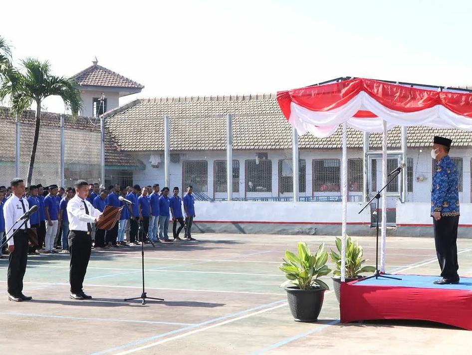 Warga binaan mengikuti serangkaian kegiatan upacara bersama dengan seluruh petugas Lapas Banyuwangi dan mahasiswa IAIDA Blokagung yang sedang melaksanakan Praktek Kerja Lapangan (PKL) di Lapas Banyuwangi.