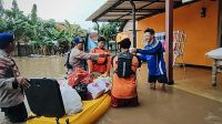 Pakai Perahu Karet, Satpolairud Polresta Banyuwangi Terjun Bantu Korban Banjir