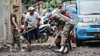 Pasca Banjir Banyuwangi, Satpol PP Bersama Warga Kerja Bakti Pembersihan