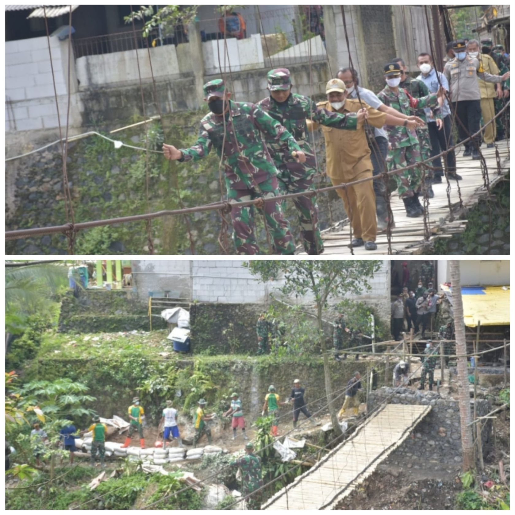 “TNI akan selalu siap membantu kapanpun untuk membangun jembatan gantung, tergantung kebijakan pemerintah daerah,” ungkapnya.