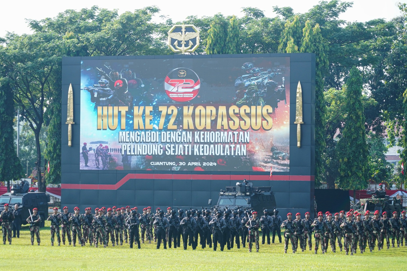 Upacara peringatan HUT Kopassus ke-72 ini dimeriahkan dengan berbagai atraksi dan defile pasukan Kopassus yang gagah berani. Acara ini menjadi bukti nyata semangat Kopassus dalam menjaga kedaulatan bangsa dan negara.