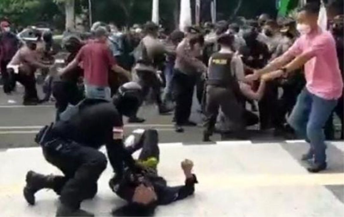 Tidak bisa dipungkiri, sejumlah pendemo jadi bulan-bulanan perlakuan kasar petugas jika ada diantara mereka yang tertangkap.