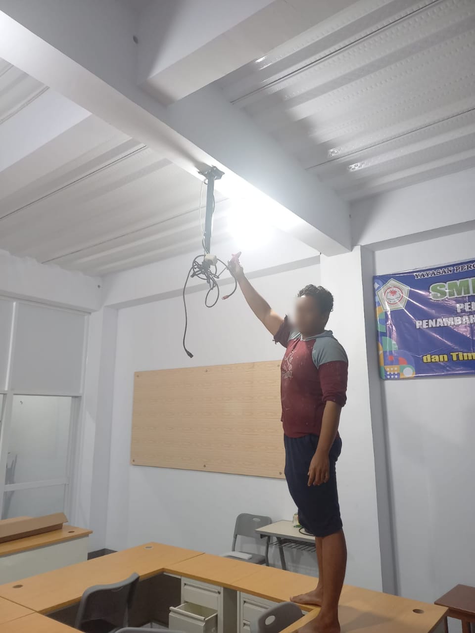 Kejadian bermula pada Jumat malam sekitar pukul 19.45 WIB, ketika pelaku, yang bekerja sebagai tukang bangunan di sekolah tersebut, melakukan pencurian proyektor di ruang laboratorium. Modus operandi pelaku terungkap setelah rekaman CCTV menunjukkan dirinya membawa proyektor keluar dari area sekolah.