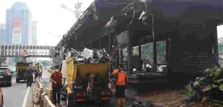 Bersama pula Satuan Polisi Pamong Praja, Dinas Penanggulangan Kebakaran dan Penyelamatan (Gulkarmat), serta Pasukan Oranye dari Petugas Penanganan Prasarana dan Sarana Umum (PPSU). Tahap awal, pemulihan difokuskan pada pembersihan sampah dan puing bekas perusakan, seperti tumpukan sampah, sisa spanduk, dan puing dari fasilitas umum yang rusak. Dilanjutkan dengan perapian taman yang sempat rusak dan kotor untuk ditata kembali. Dilakukan pula pengecatan kanstin jalan yang kotor serta pembersihan di pos dan halte yang terbakar. Dilakukan pula penyemprotan bara dan abu bekas pembakaran oleh Disgulkarmat untuk memastikan tidak ada potensi terjadi kebakaran susulan dari sumber api yang belum mati.