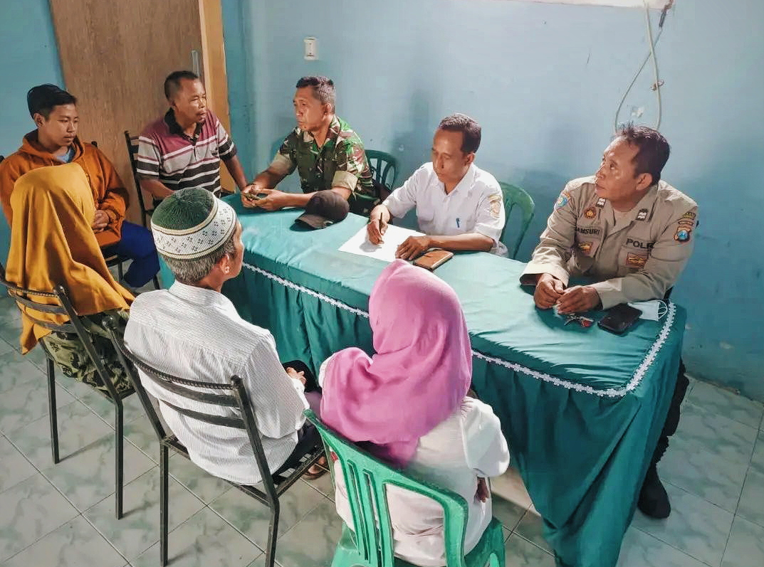 Hadir dalam kegiatan musyawarah dan mediasi Kepala Desa Moh. Farid, Babinsa Sertu Hadi Purnomo, Babinkamtimas Aiptu Samsuri, Sekdes P. Nyato, Pihak pelapor 3 orang dan Pihak terlapor 3 orang.