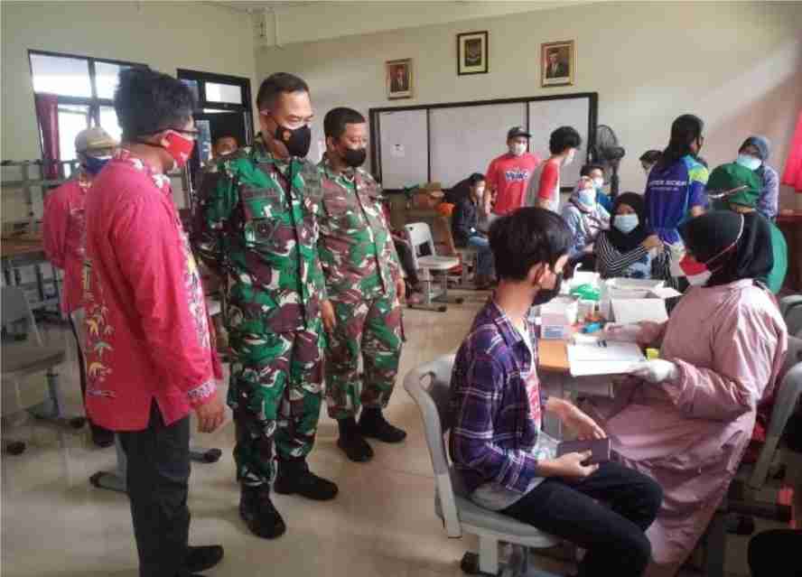 JAKARTA TIMUR – potensinusantara.co.id – Kodim 0505, Dalam rangka percepatan kekebalan kelompok lingkungan tingkat RT/RW, Kelurahan dan Kecamatan, Danramil 08/Duren Sawit Kapten Inf Hadi Sasmungi bekerja sama dengan Puskes TNI, pengelola Pondok Kelapa Square dan Kepala Sekolah SMPN 27 menggelar Vaksinasi Covid-19 selama satu Minggu, terhitung mulai tanggal 1-6 September, Kamis (02/09/21).