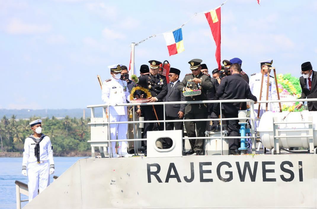 Sebelumnya dilaksanakan tabur bunga dilaut, telah dilaksanakan Upacara di halaman Pemkab Banyuwangi, selanjutnya ziarah nasional di TMP Wisma Raga Satria dan di TMP Wisma Raga Satria Pahlawan Laut ALRI.