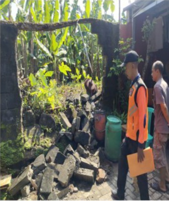 Dari sisi kerugian material, tercatat dua unit rumah mengalami rusak berat, satu unit rumah mengalami rusak sedang, serta tiga unit rumah lainnya berada dalam kondisi terancam. Selain itu, satu unit kandang domba juga dilaporkan tertimpa material dari tembok penahan tanah yang longsor.