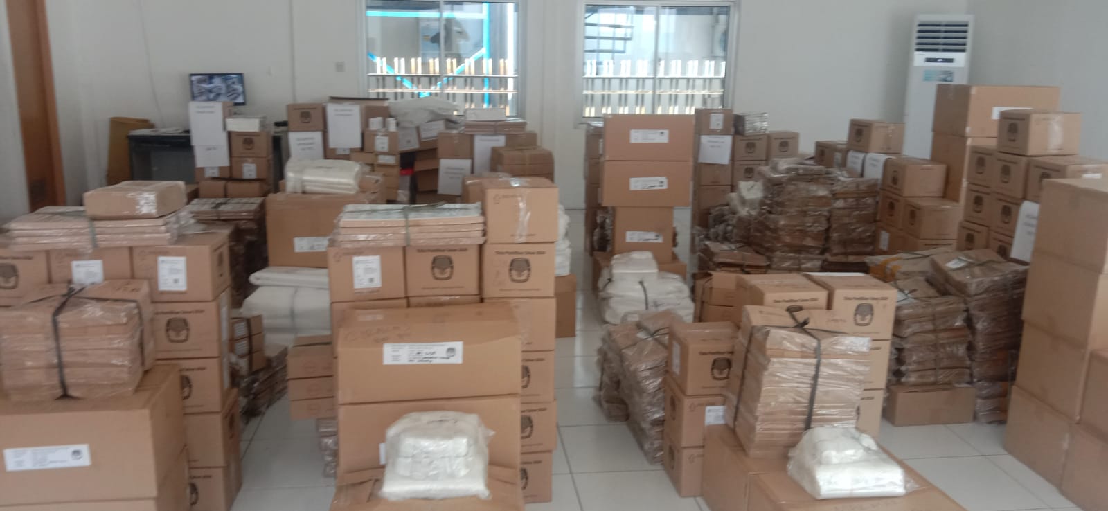 Kabag Ops menambahkan untuk saat ini baru sebagian logistik pemilu yang sudah ada di gudang KPU, untuk yang lainnya masih menunggu pengirimannya.