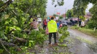 Kapolsek Ngadirojo AKP Pujoyono, S.H., bersama personel langsung turun ke lokasi setelah menerima laporan dari masyarakat. Petugas bersama warga setempat bergotong royong melakukan evakuasi pohon tumbang yang sempat mengganggu aktivitas warga.