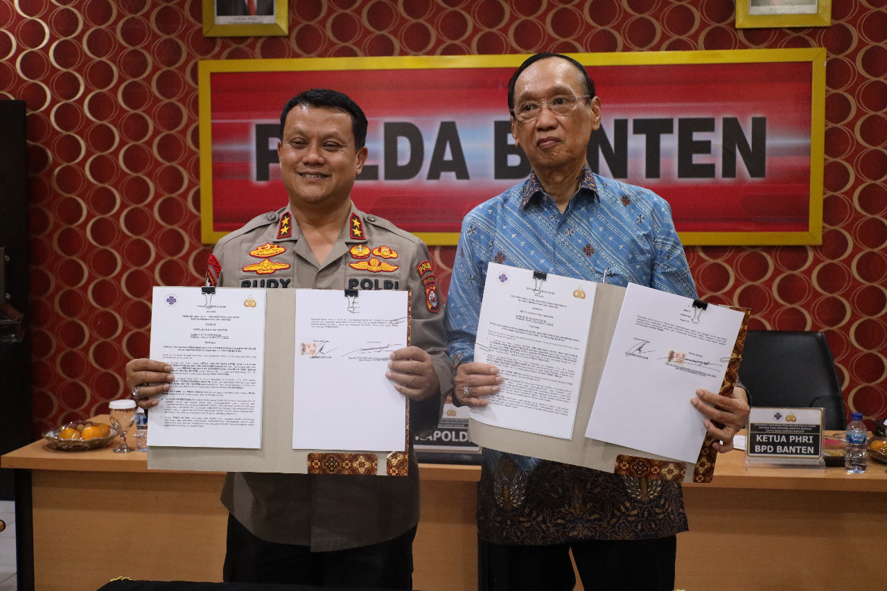 Penandatanganan perjanjian kerjasama ditanda tangani oleh Kapolda Banten Irjen Pol Dr Rudy Heriyanto dan ketua PHRI BPD Banten H. Achmad Sari Alam dihadiri oleh Wakapolda Banten Drs. Ery Nursatari beserta para PJU Polda Banten dan para pemilik Hotel dan Restoran.