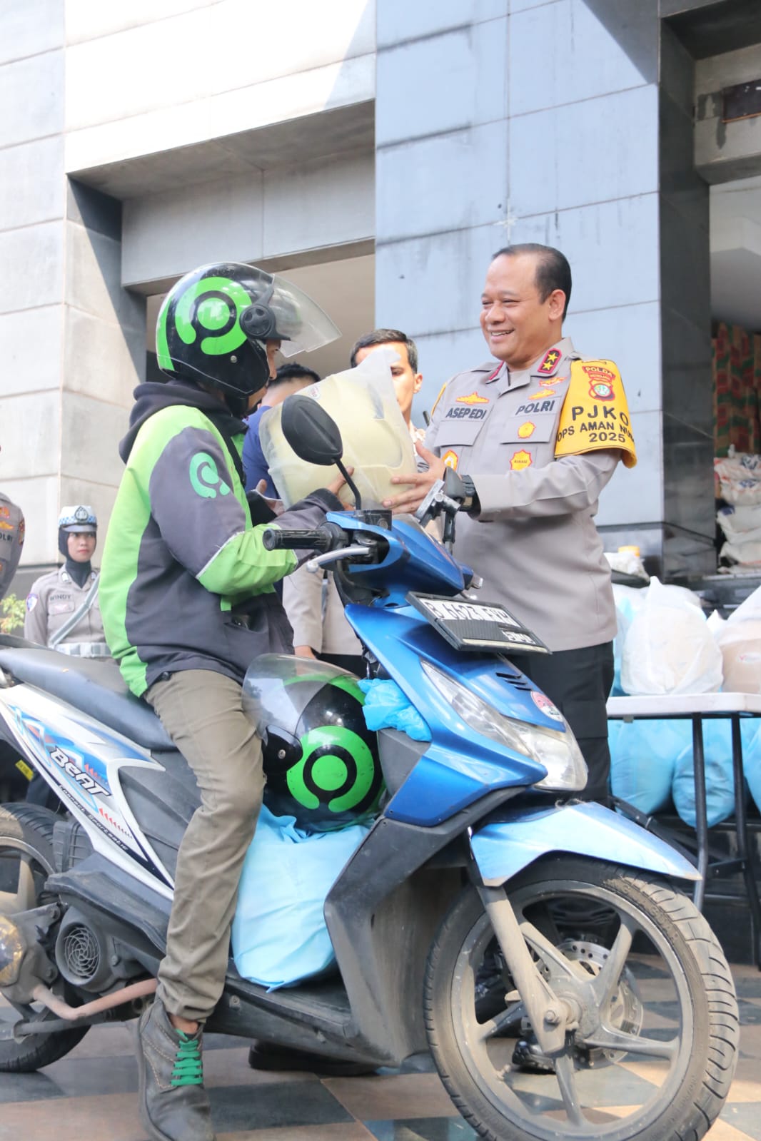Dalam kegiatan ini, setidaknya 300 pengemudi ojek online menerima bantuan berupa helm dan paket sembako. Bantuan tersebut diharapkan dapat mendukung keselamatan serta meringankan kebutuhan sehari-hari para pengemudi.
