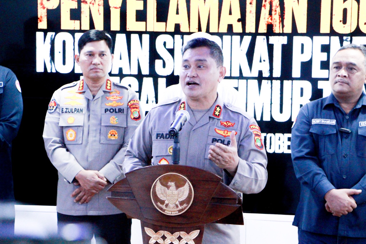 JAKARTA – Potensinusantara.co.id – Kepala Badan Pelindungan Pekerja Migran Indonesia (BP2MI) Benny Rhamndani, bersama Kapolda Metro Jaya Irjen Pol. Dr. Mohammad Fadil Imran, M.Si melakukan Konferensi Pers terkait Penyelamatan 160 Calon Pekerja Migran Indonesia (CPMI) korban sindikat penempatan ilegal ke Timur Tengah. Selasa (25/10).