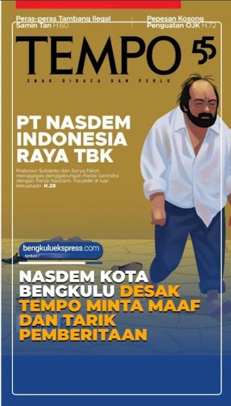 JAKARTA, potensinusantara.co.id – Redaksi Tempo menyampaikan permintaan maaf kepada Partai NasDem terkait dampak laporan utama Majalah Tempo edisi pekan ini yang menyinggung Ketua Umum NasDem, Surya Paloh, beserta kader partai tersebut.
