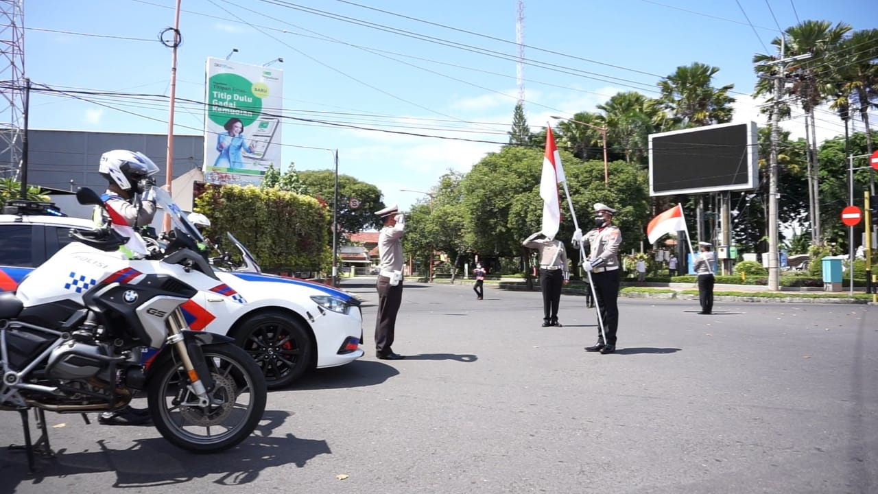 Personel Polri tersebut untuk menghentikan serentak pengguna jalan yang ada diseputaran jalan Kota Banyuwangi selama 3 menit pada pukul 10.17 – 10. 20 WIB saat detik-detik proklamasi peringatan HUT RI ke-76. Sirene juga dibunyikan di Simpang Lima Banyuwangi dan beberapa persimpangan.