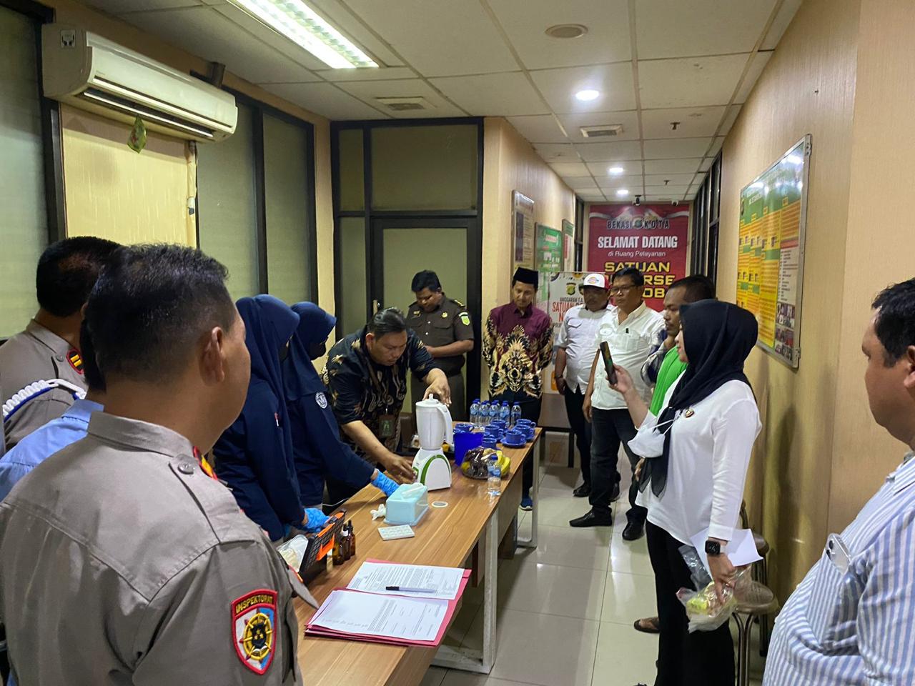 Turut hadir dalam kegiatan ini perwakilan dari Puslabfor Bareskrim Polri, Kanit Provos, Ka Siwas Polres Metro Bekasi Kota, perwakilan Kejaksaan Negeri Bekasi, dan seorang pengacara. Sebelum dimusnahkan, tim Puslabfor Mabes Polri melakukan tes untuk memastikan kandungan narkotika dalam barang bukti tersebut. Setelah dinyatakan positif, sabu tersebut kemudian dimusnahkan dengan cara diblender dalam air. Proses pemusnahan diakhiri dengan penandatanganan berita acara.