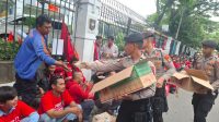 Pelayanan dilakukan dengan pendekatan humanis. Selain memastikan kegiatan berjalan tertib, personel kepolisian juga membagikan snack berupa roti dan air mineral kepada peserta aksi.