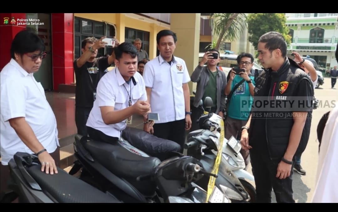 JAKARTA SELATAN – Potensinusantara.co.id – Suasana haru dan syukur dirasakan okeh warga masyarakat di halaman Mapolres Metro Jakarta Selatan pada saat warga menemukan kembali sepeda motor yang hilang, Penyerahan dilakukan langsung oleh Kasat Reskrim Polres Metro Jakarta Selatan, AKBP. Gogo Galesung, S.I.K., M.H., didampingi Kasi Humas AKP. Nurma Dewi, S.H., setelah pelaksanaan rilis ungkap kasus pelaku curanmor.