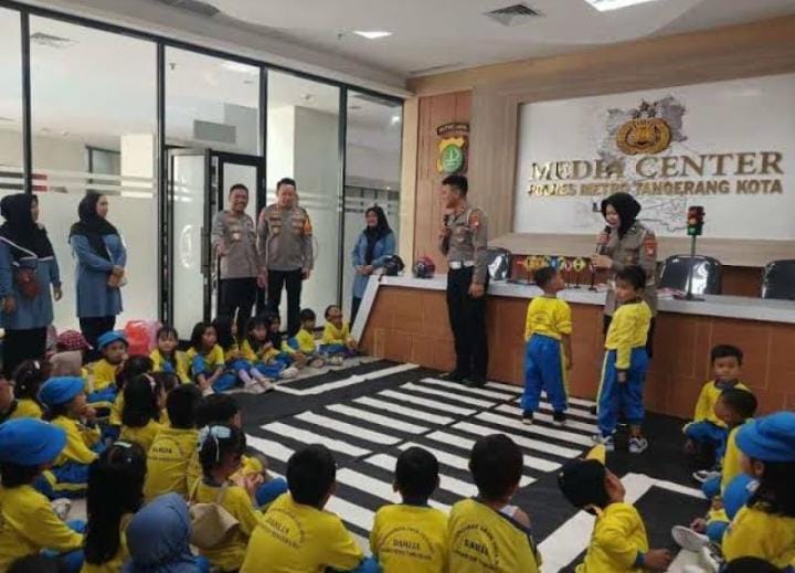 TANGERANG, potensinusantara.co.id – Bertempat di Ruang Media Center, Polres Metro Tangerang Kota. Unit Keamanan dan Keselamatan (Kamsel) Sat Lantas Polres Metro Tangerang Kota melaksanakan kegiatan ‘Polisi Sahabat Anak’ bersama anak-anak dari Preschool Indonesia. Pada Selasa (18/11/2025).