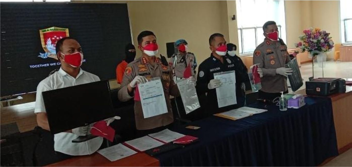 Kapolresta Tangerang menambahkan berdasarkan penangkapan tersebut, Polresta Tangerang Polda Banten telah mengamankan 1 unit CPU merek Alcatros, 1 unit monitor merek LG, 1 unit keyboard merek M-Tech, 1 unit printer merek Epson, 1 unit mesin scan merek Canoscan, 1 buah kartu vaksin asli atas nama berenisial Sk.1 lembar surat keterangan hasil swab antigen covid-19 atas nama Sk 1 lembar surat hasil swab antigen atas nama SR dan uang tunai sebesar Rp 100.000.