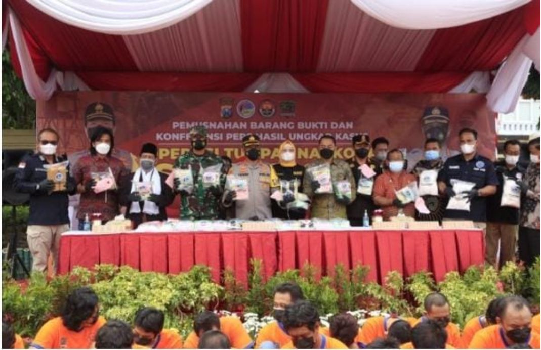 Sementara, total jumlah barang bukti yang dimusnahkan keseluruhan, sebanyak 39 kilo 373,75 gram Sabu, 2 kilo 479,73 gram Ganja, 400 butir Happy five, 39.000 butir Pil koplo LL.