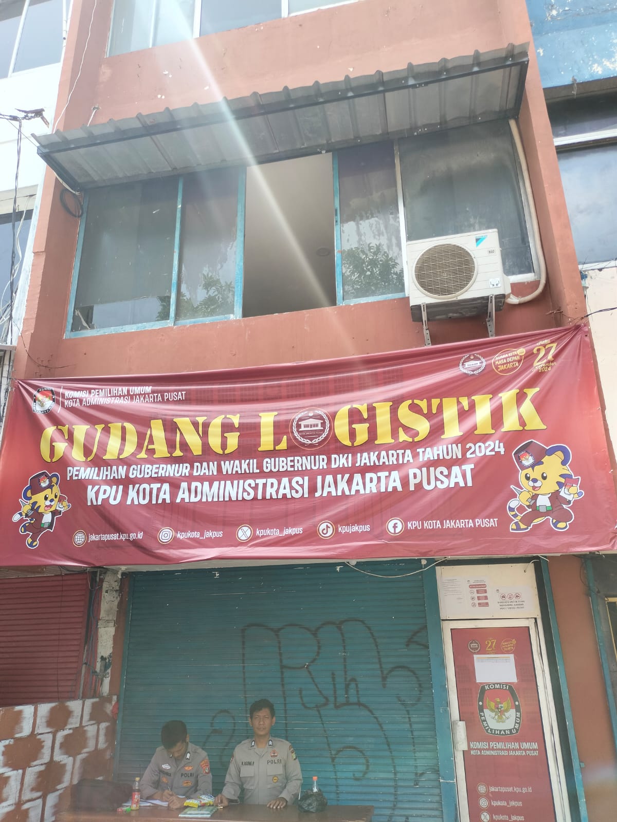 JAKARTA – Potensinusantara.co.id – Anggota Polsek Kemayoran Bripka Andika bersama Brigadir Witno melaksanakan kegiatan Pengamanan Gudang Logistik KPU Kota Jakarta Pusat di Jl. Angkasa Raya No.18 F Kel. Gunung Sahari Selatan Kec. Kemayoran. Minggu (27/10/2024).