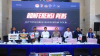 Pengungkapan ini disampaikan dalam Konferensi Pers Dittipidsiber Bareskrim Polri di Gedung Awaloedin Djamin, Bareskrim Polri, Jakarta, Rabu (27/8/2025). Hadir sebagai narasumber Dir Tipidsiber Bareskrim Polri Brigjen Pol Himawan Bayu Aji, Karopenmas Divhumas Polri Brigjen Pol Trunoyudo Wisnu Andiko, Deputi Analisis dan Pemeriksaan PPATK Danang Tri Hartono, Asisten Deputi Koordinasi Pelindungan Data Kemenkopolkam Syaiful Garyadi, dan Direktur Pengendalian Aplikasi Informatika Kemenkominfo Sofyan Kurniawan.
