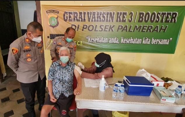 JAKARTA – potensinusantaraa.co.id – Polsek Palmerah Polres Metro Jakarta Barat, gelar kegiatan vaksinasi ketiga Booster untuk masyarakat umum, di gerai vaksinasi di Gedung Tinggi Mako Polsek Palmerah, Jl. Palmerah Barat lll Palmerah, Jakarta Barat, Minggu (27/2).