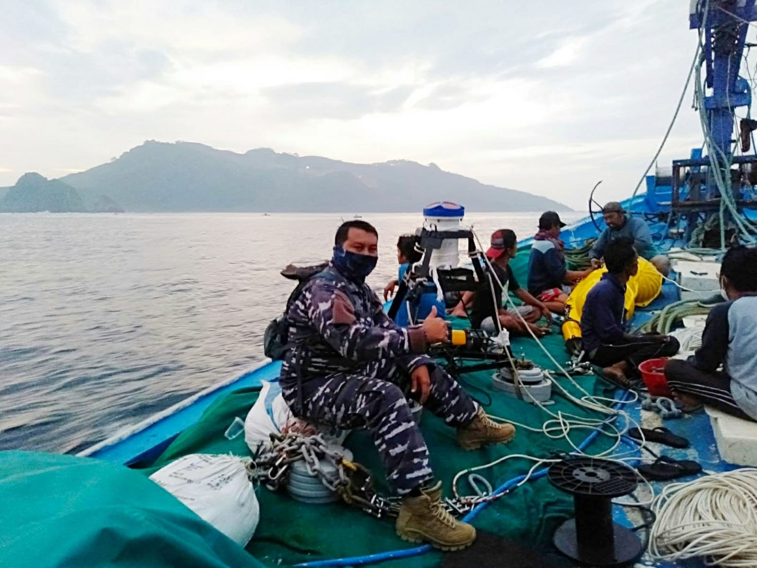 Banyuwangi, potensinusantara.co.id – Komandan Pos TNI AL (Posal) Pancer, Lettu Laut (P) Eko Meiyanto beserta Prajurit Posal Pancer Jajaran Lanal Banyuwangi bersama dengan tokoh masyarakat Pancer membantu pelaksanaan Survey Hidro Oceano Graphic Project atau Candrian Of Pesanggaran Banyuwangi East Java di wilayah perairan pelabuhan Perikanan Pancer, Kabupaten Banyuwangi, Jawa Timur, Selasa (15/2/2022).