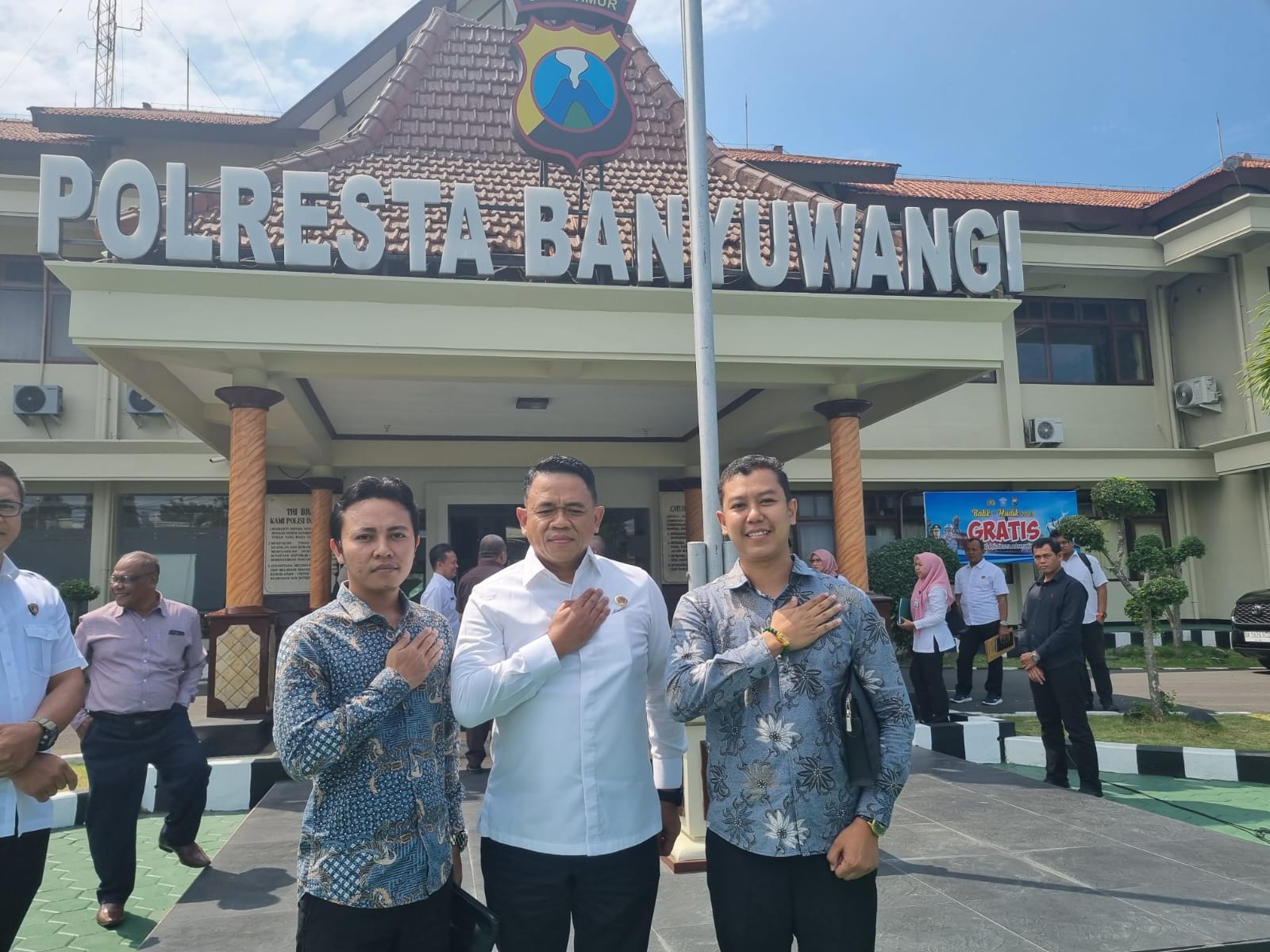 Didampingi Tim Oase Law Firm (OLF) dan Gerakan Nasional Pemberantasan Korupsi (GNPK) serta Tokoh Masyarakat, Kepala BPN Banyuwangi Budiono, Kapolresta Banyuwangi Kombes Pol Deddy Foury Millewa menerima kunjungan Brigjend Polisi Arif Rachman.