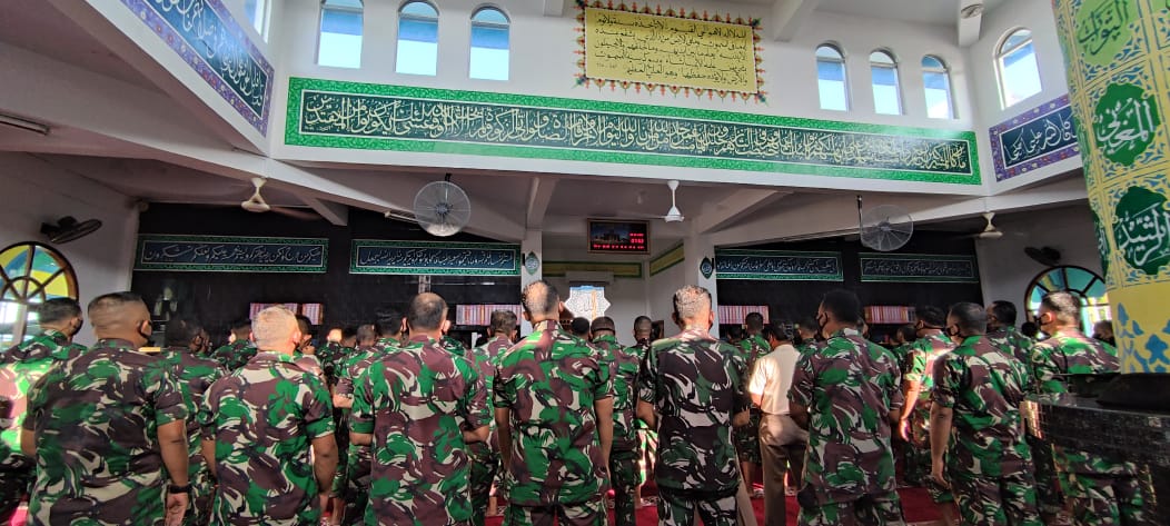 Tanjungpinang, potensinusantara.co.id- Prajurit Batalyon Marinir Pertahanan Pangkalan (Yonmarhanlan) IV Tanjungpinang dan selurh Jajaran TNI Angkatan Laut di Indonesia, menggelar doa bersama atas gugurnya Lettu Mar Anumerta M Ikbal Dan Praka Mar Anumerta Wilson Anderson Here, dua prajurit Satuan Tugas (Satgas) Muara dan Pesisir (Mupe) Korps Marinir TNI AL akibat serangan Kelompok Separatis Teroris Papua (KSTP) di Nduga. Yang berlangsung di masjid Hajar Aswad Lantamal IV, Jl. Batu Hitam Kec. Tanjungpinang Barat, kota Tanjungpinang, provinsi Kepulauan Riau. Senin 28/03/2022.