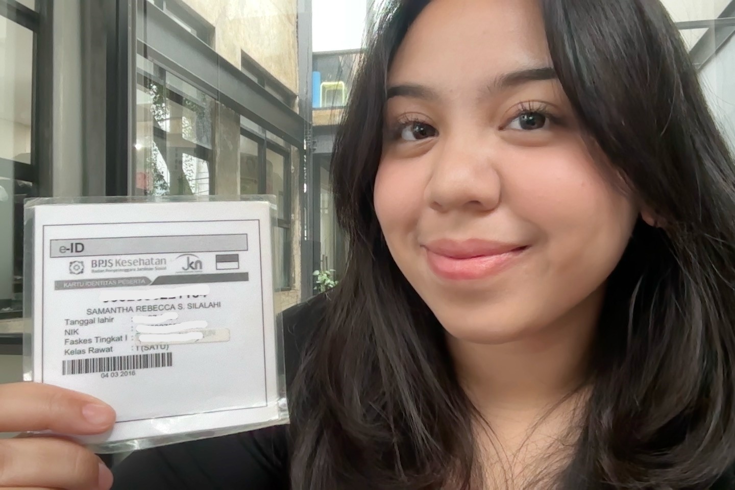 Samantha menceritakan salah satu pengalamannya menggunakan JKN bermula ketika ia mengalami alergi parah disertai gatal-gatal, flu, dan sakit kepala. Pada saat itu dirinya tidak mengetahui penyebab alergi yang dideritanya, sehingga Samantha memutuskan untuk pergi ke Puskesmas tempat dirinya terdaftar. Setelah ia sampai disana, Samantha melakukan pendaftaran dan menunggu giliran untuk pemeriksaan di poli oleh dokter. Selesai diperiksa oleh dokter, diketahui bahwa Samantha memiliki riwayat alergi terhadap beberapa protein, seperti susu sapi, keju, dan lain-lain. Alergi tersebut sempat hilang, namun muncul kembali karena perubahan sistem imun seiring pertumbuhan. Selain itu, ia juga mengalami alergi terhadap debu, bulu kucing, dan perubahan suhu ekstrem.
