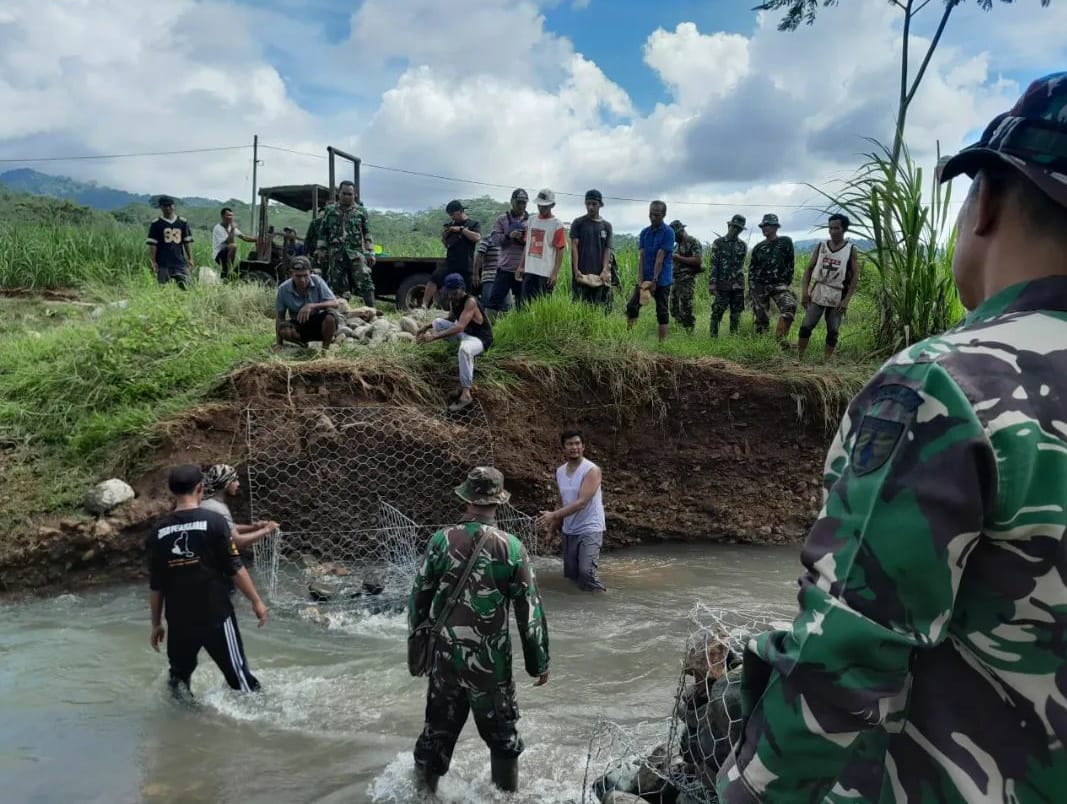 Banyuwangi, potensinusantara.co.id – Anggota Kodim 0825 Banyuwangi, Jawa Timur bekerja bakti membangun jembatan darurat di Desa Kandangan, Kecamatan Pesanggaran, Kabupaten Banyuwangi, yang dimulai pada Selasa, 29 November 2022 lalu.